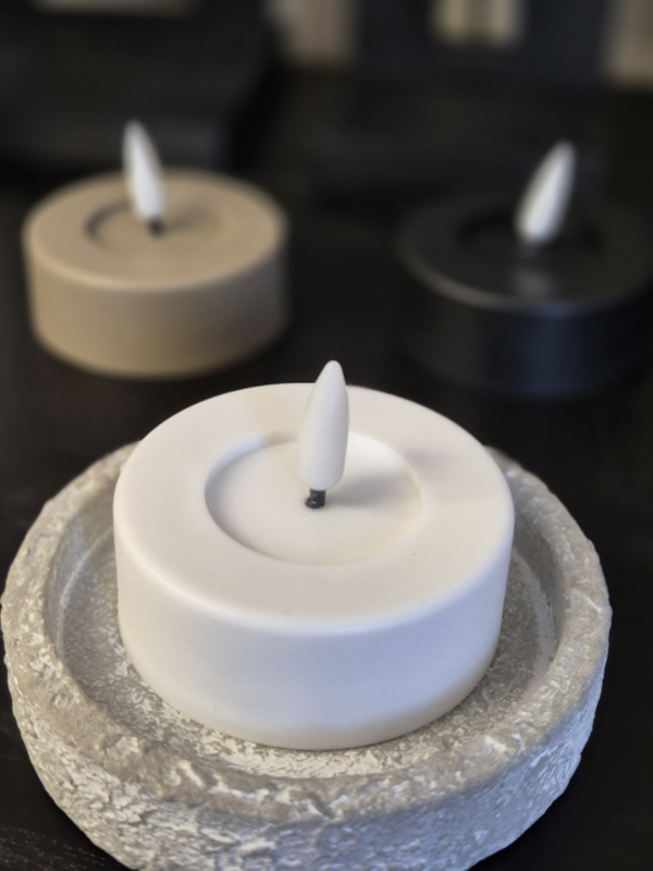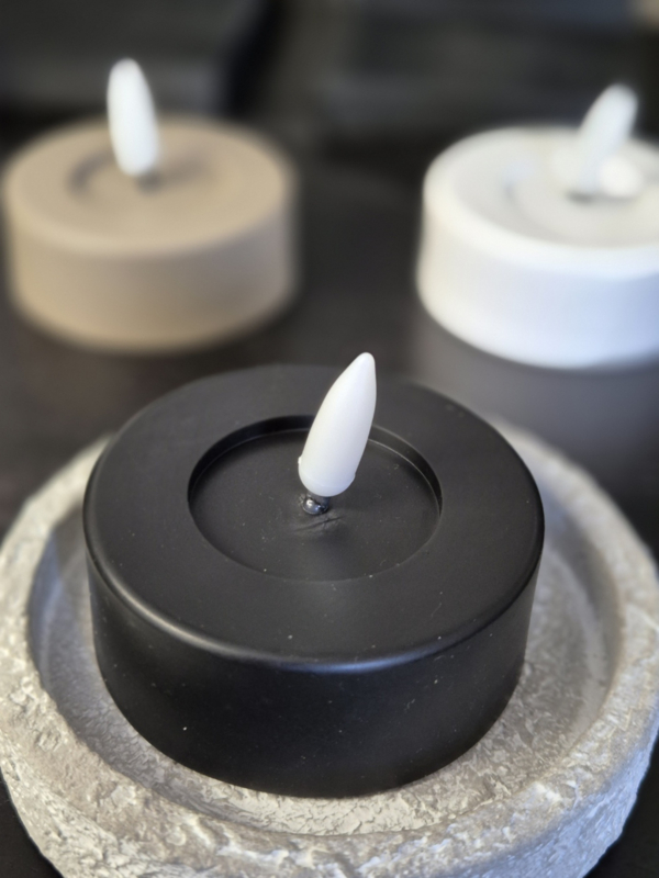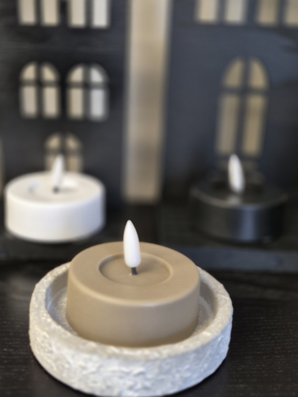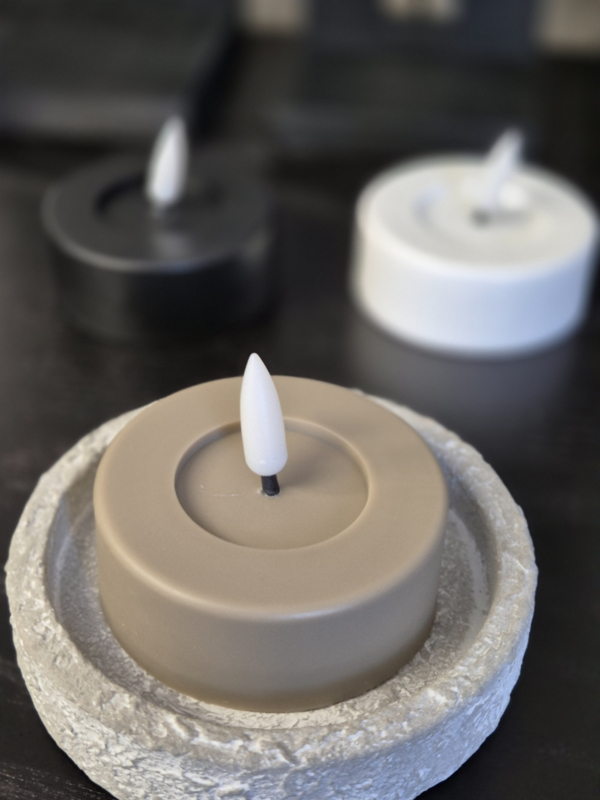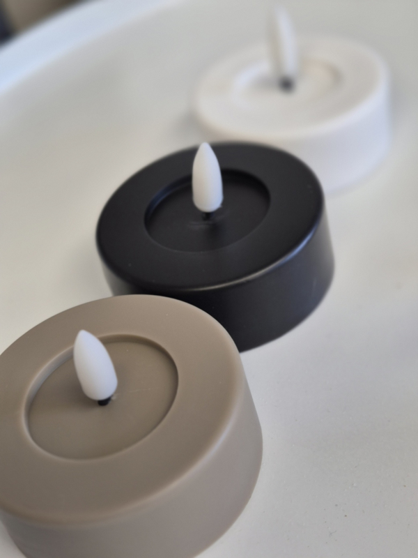 Met zijn natuurlijke uitstraling en zachte flikkerlicht lijkt deze LED kaars net echt maar dan veilig, duurzaam en zonder rook of geur. verkrijgbaar in 3 kleuren taupe-zwart-wit