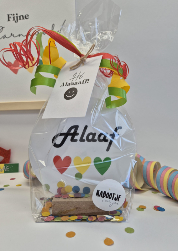 Maak het cadeau extra persoonlijk met een bijpassend kaartje. Je kunt kiezen uit 3 verschillende kaartjes, zodat het cadeautje helemaal aansluit bij de ontvanger en het moment.