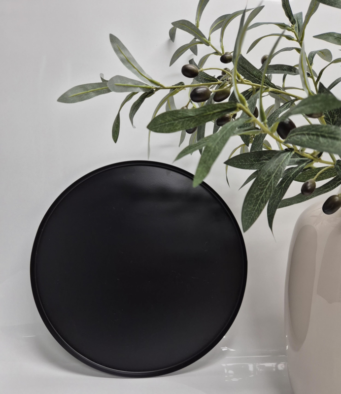 Met een doorsnee van 40 cm is het dienblad perfect om decoratie te combineren, zoals kandelaars, vazen of woonaccessoires precies zoals te zien is op de foto. Ook mooi op een tafel, dressoir of keukenblad.