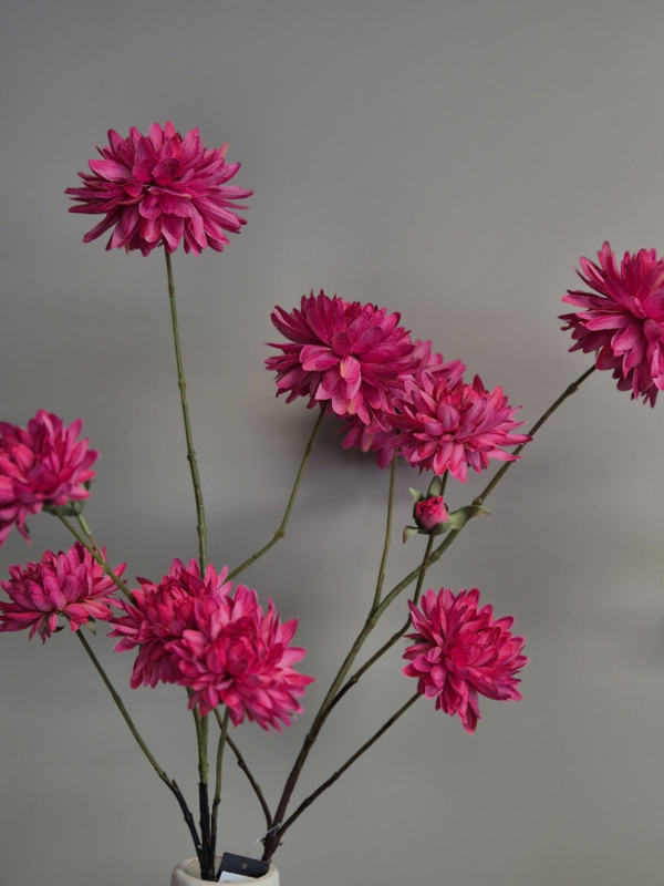 Perfect om solo te stylen in een vaas voor een krachtig statement, maar ook prachtig te combineren met andere kunstbloemen voor een speels boeket. Deze dahlia brengt kleur en elegantie in huis zonder onderhoud.