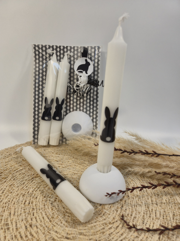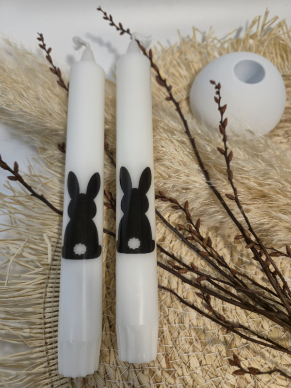 - 2 stijlvolle kaarsen met haasje