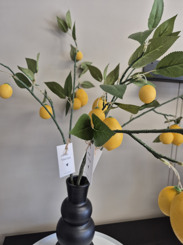De tak is voorzien van realistische citroenen en groene bladeren, waardoor hij een natuurlijke en zomerse uitstraling heeft. Perfect om in een vaas te plaatsen en direct sfeer toe te voegen aan jouw interieur.