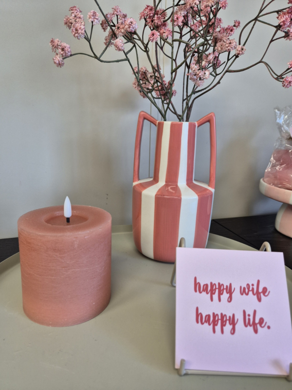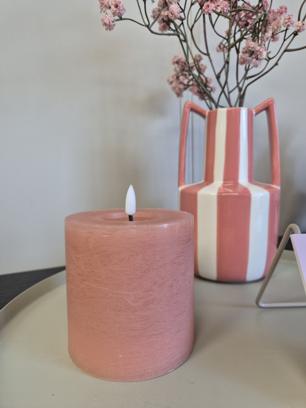 Creëer een warme en gezellige sfeer in huis met deze prachtige LED stompkaars van Countryfield in een zachte roze tint ![]()